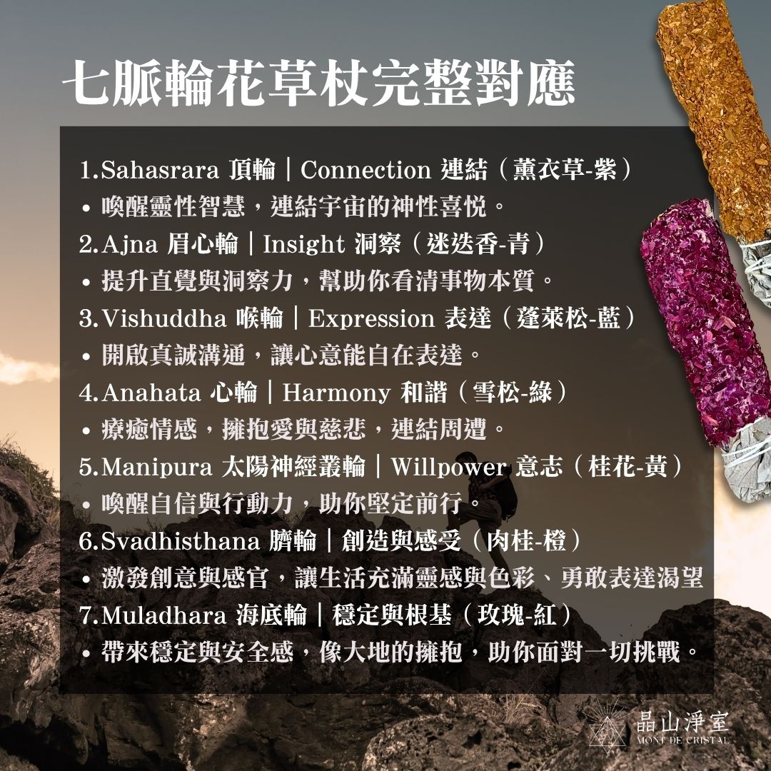 💫 我們的【晶山淨室|七脈輪綜合花草杖系列】✨