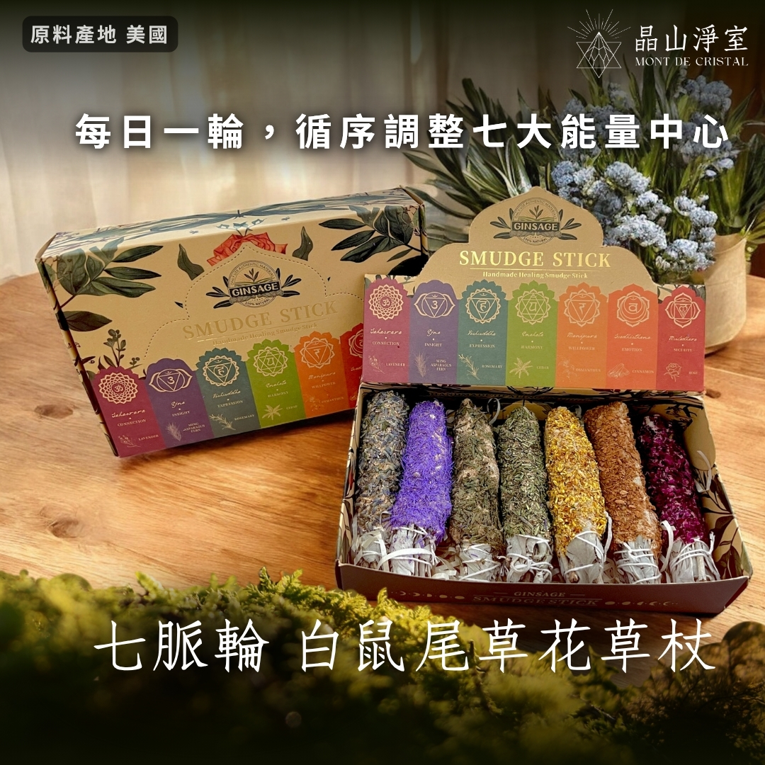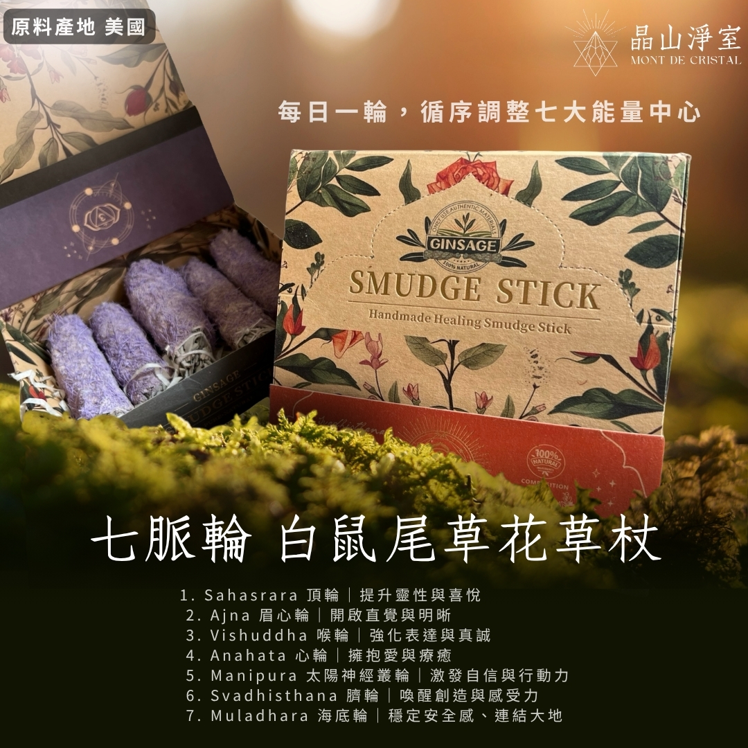 【晶山淨室】七脈輪白鼠尾草花草杖(七支入)、(五支入)、(一支入)