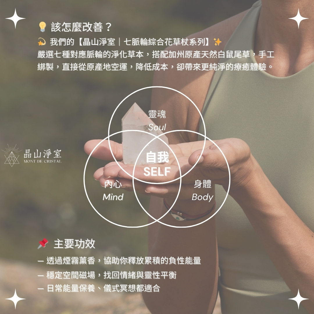 #晶山淨室 #七脈輪淨化 #白鼠尾草 #能量花草杖 #瑜伽冥想夥伴 #空間淨化 #身心靈平衡