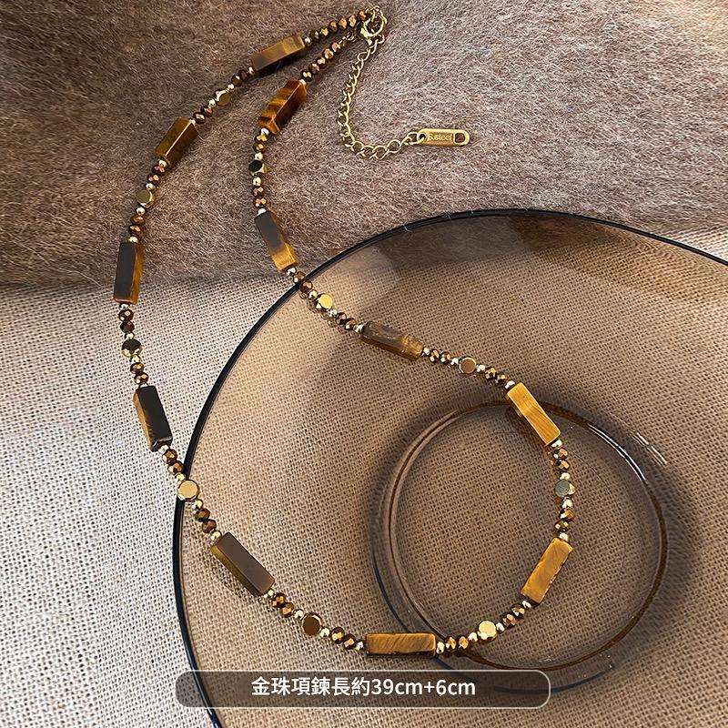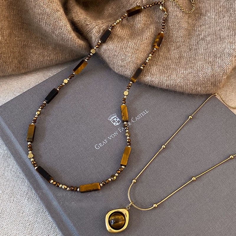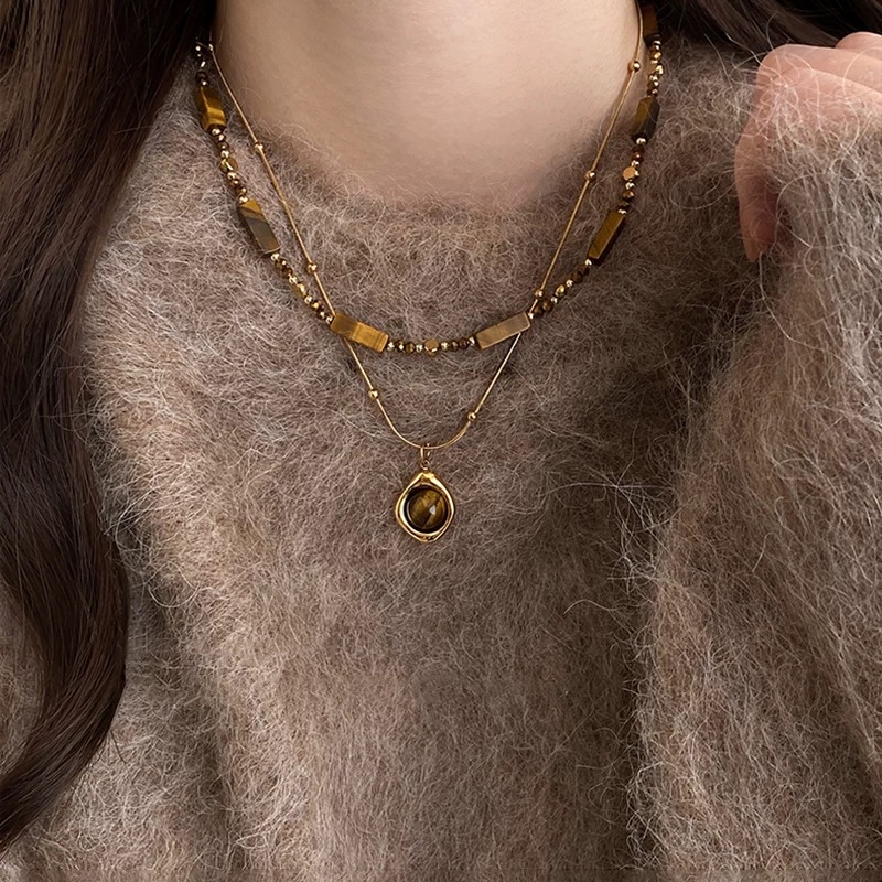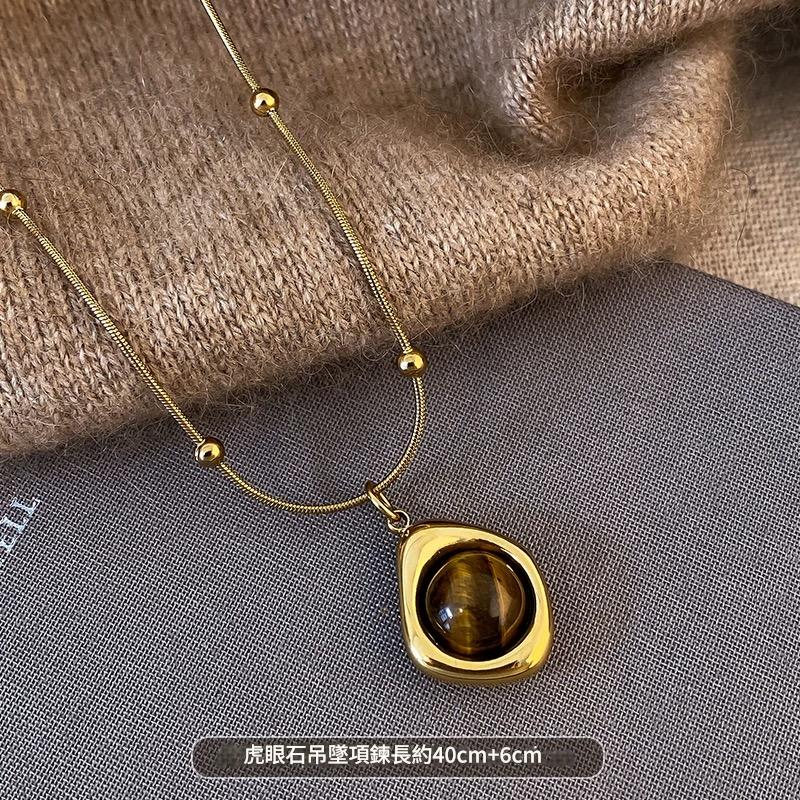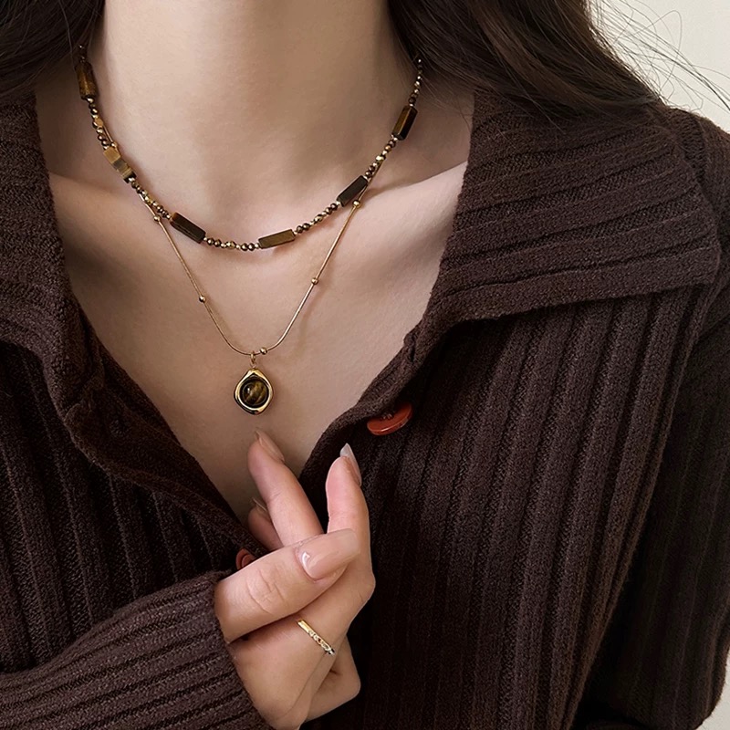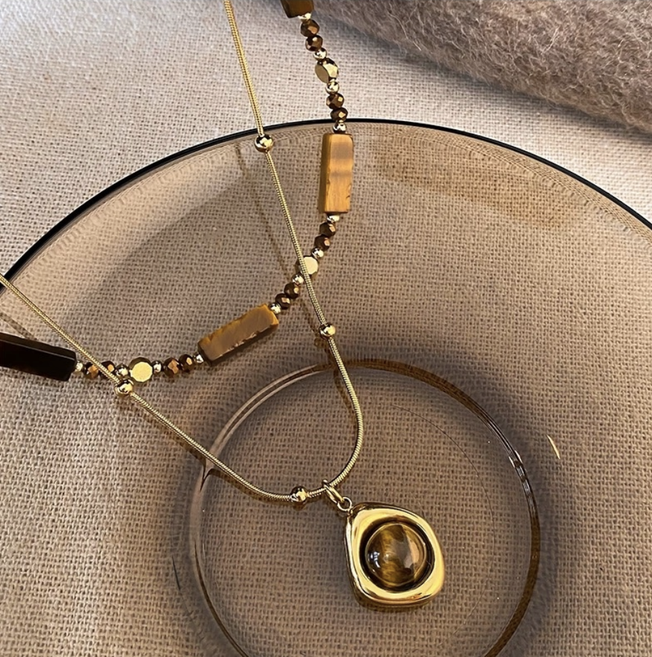 虎眼石項鍊、毛衣鏈、秋冬項鍊、復古項鍊、輕奢配飾、女項鍊、疊戴項鍊、美拉德穿搭、高級感配件、虎眼石吊墜