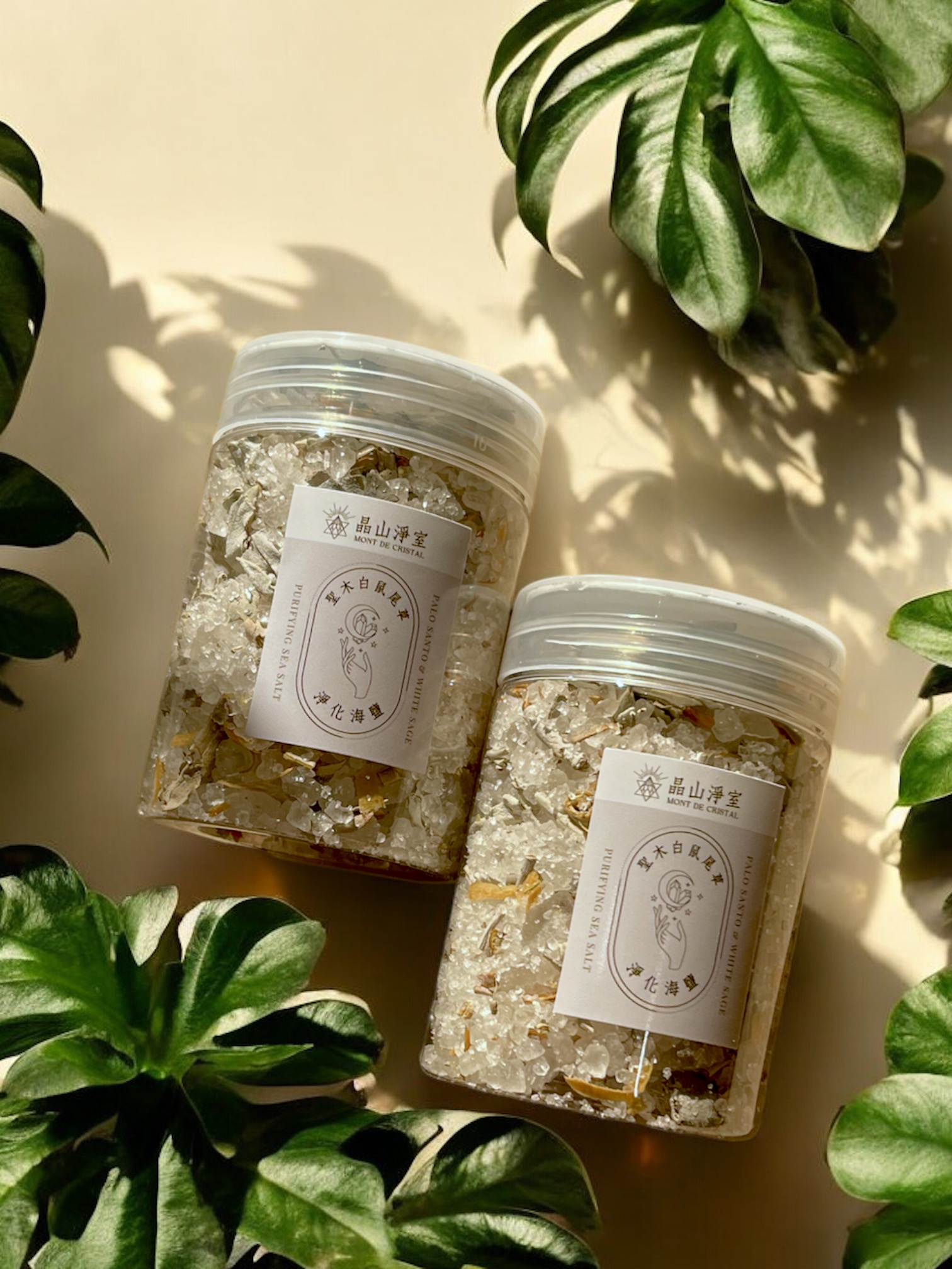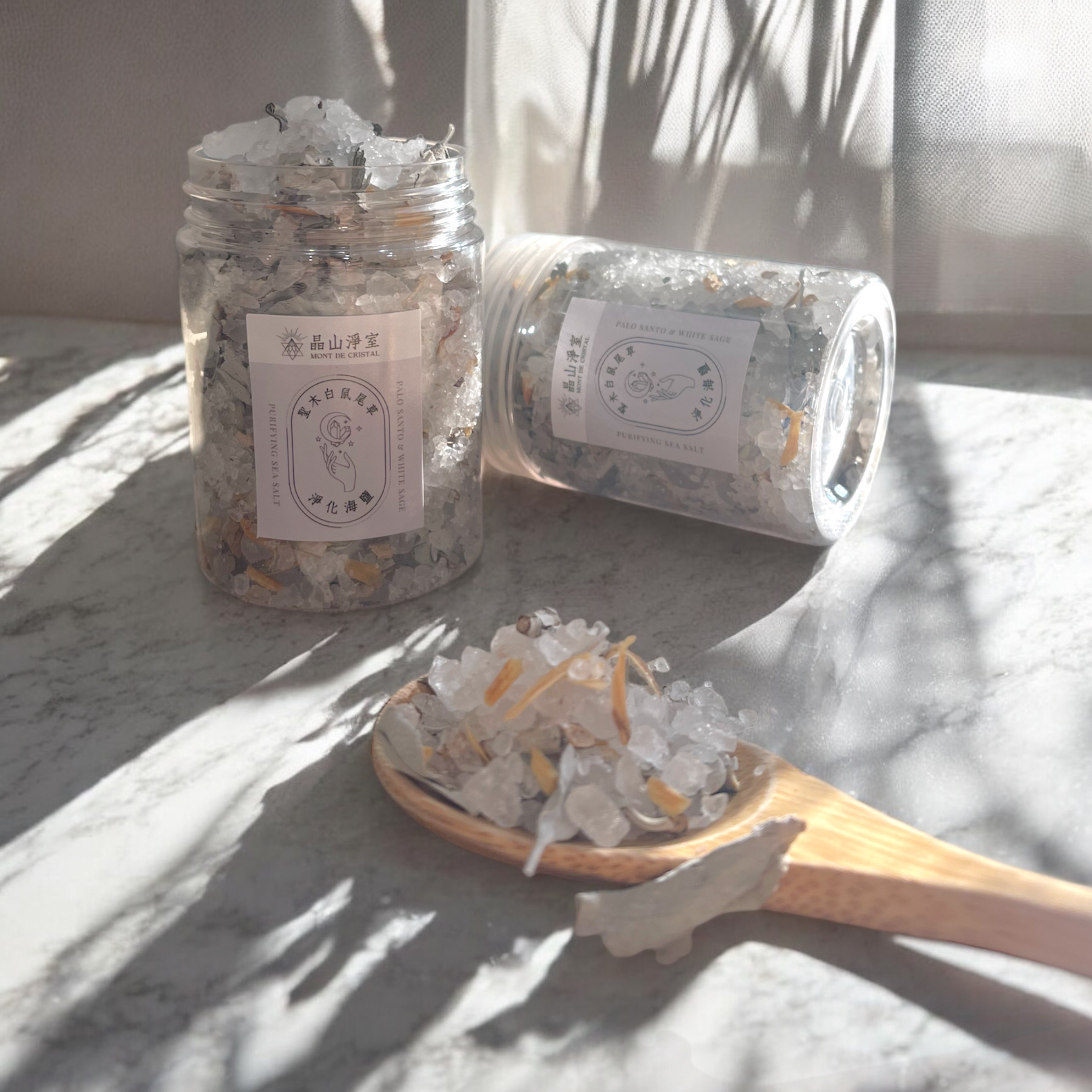 【晶山淨室】能量淨化🌿海鹽 聖木白鼠尾草/聖木雪松能量加護海鹽 能量大掃除💫花草鹽 草藥鹽 燃燒海鹽 淨化磁場 招財
