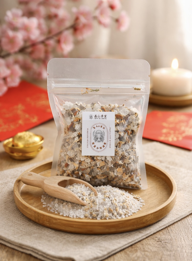 🍲 加入海鹽:倒入適量的能量海鹽,建議每次使用約40克。