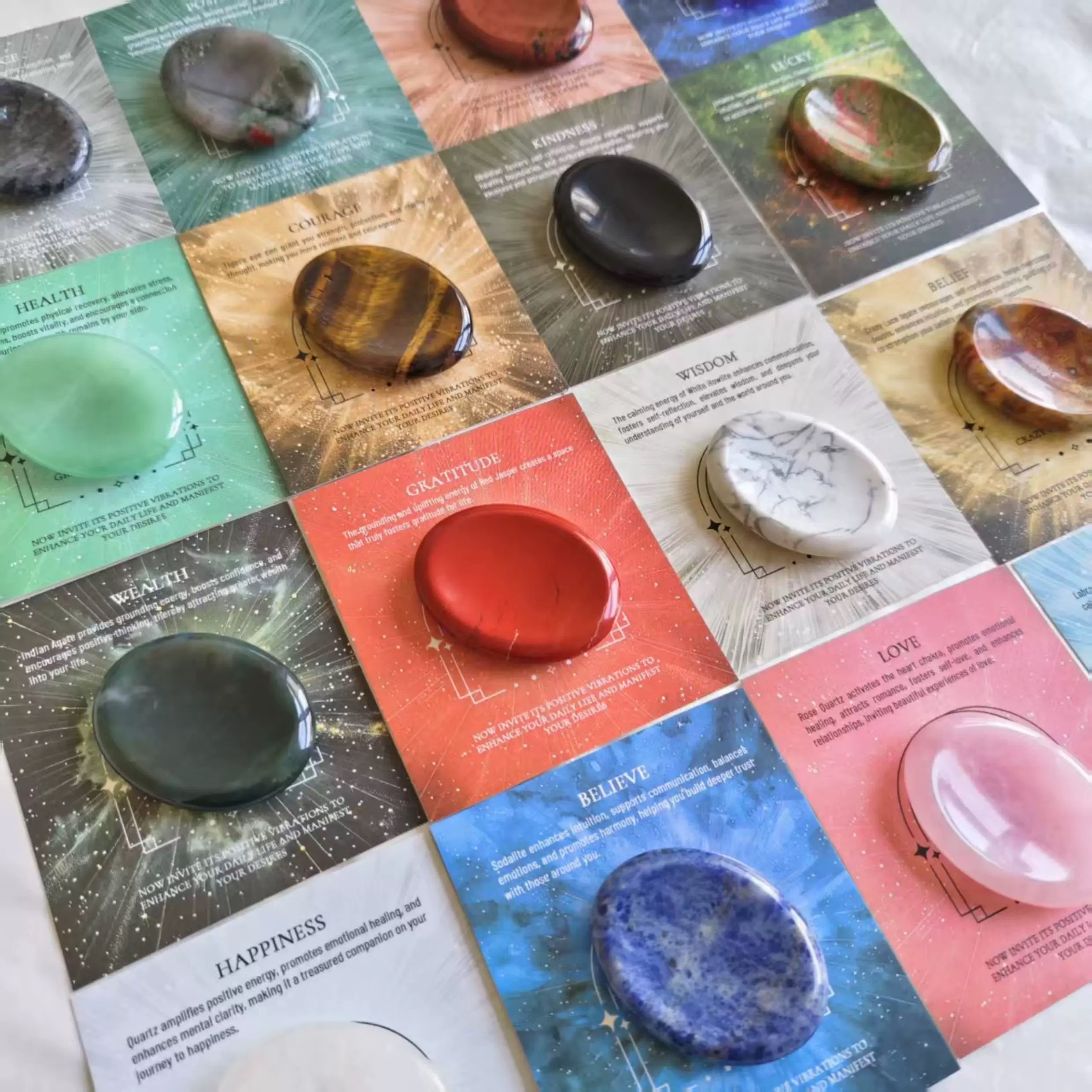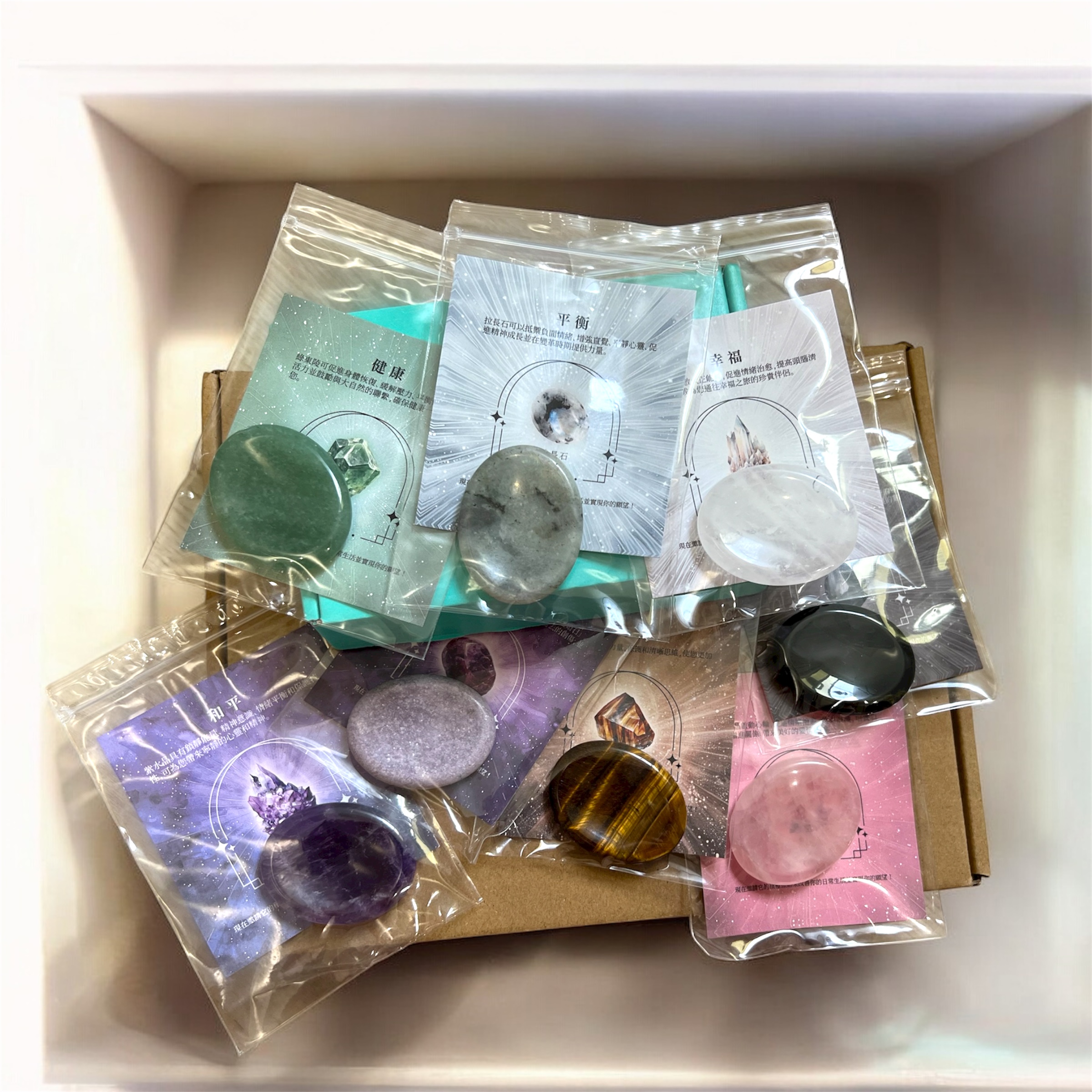 每顆拇指石皆由天然水晶細心打磨,表面圓潤光滑、能量溫和,可作為冥想石、療癒石、許願石或口袋隨身能量石使用。