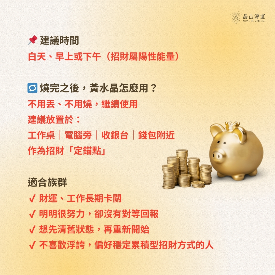 在清理完成後,負責把能量留住、定錨在現實層面。👉 火負責清理,晶石負責留下(把財抓住)