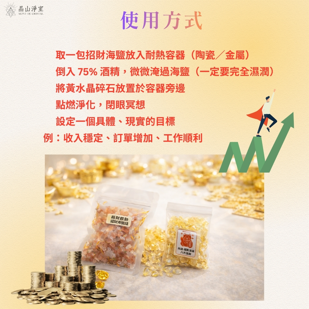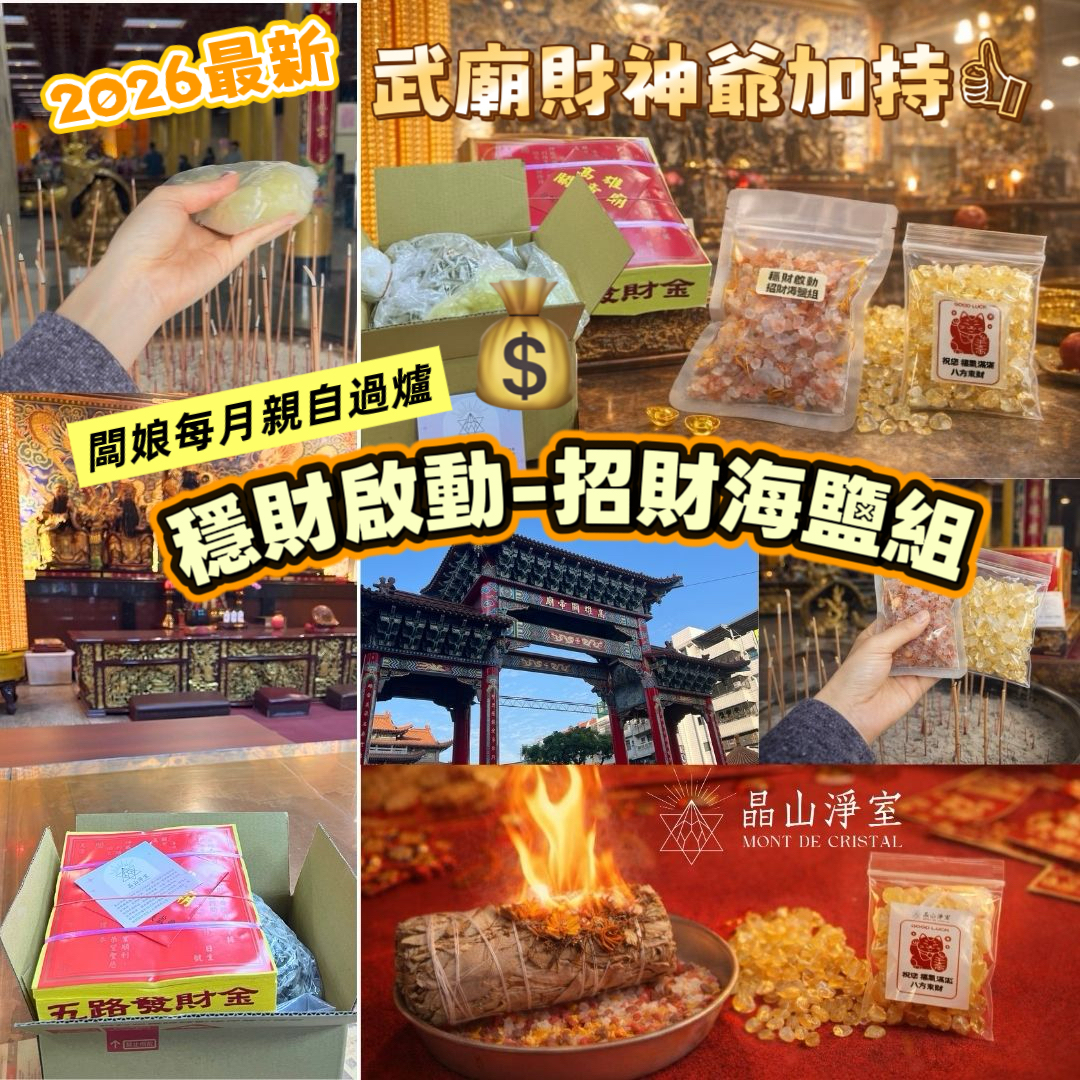 【武廟財神爺加持】穩財啟動-招財海鹽組|清火破卡關・穩住正財偏財・黃水晶引財回流新年必備